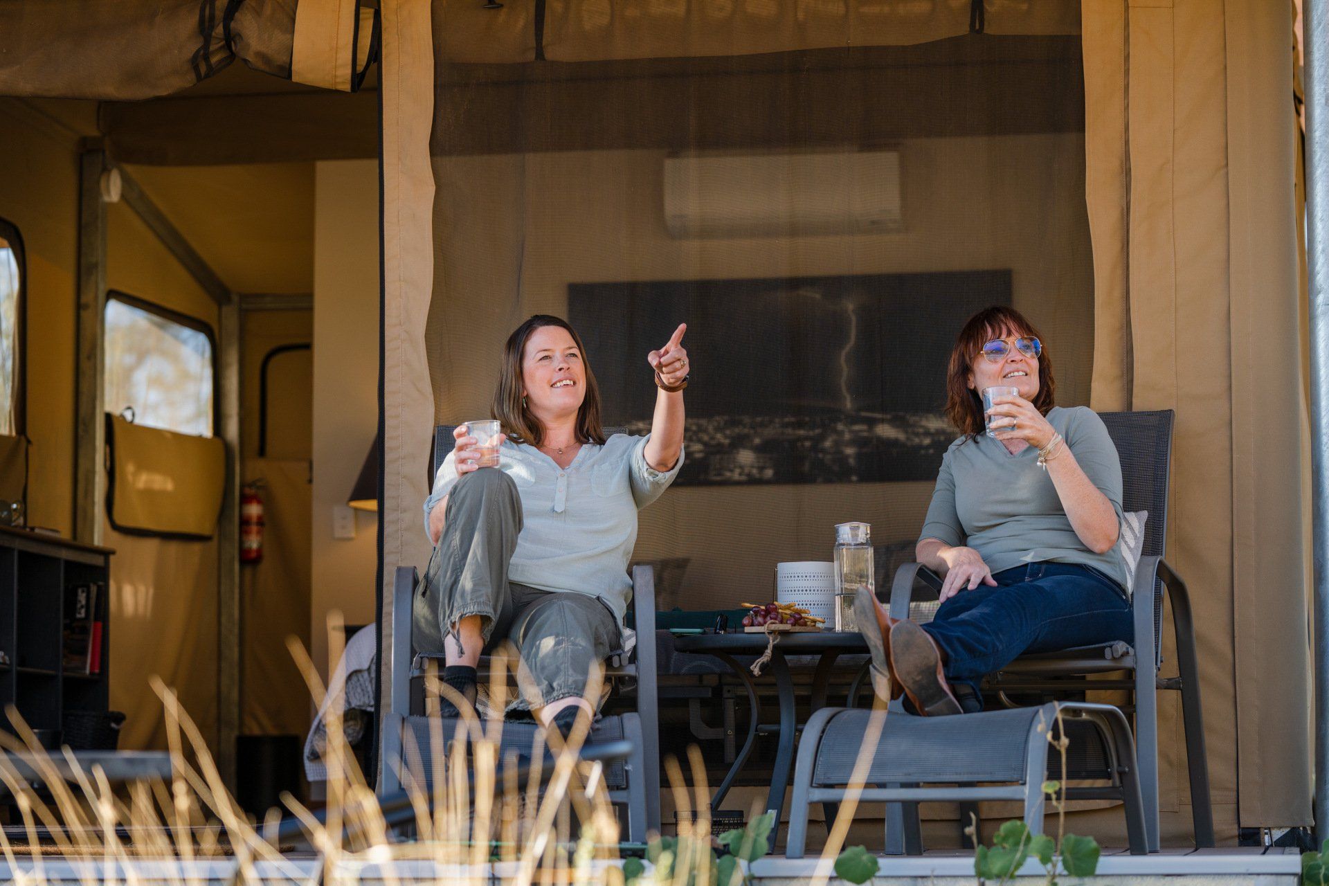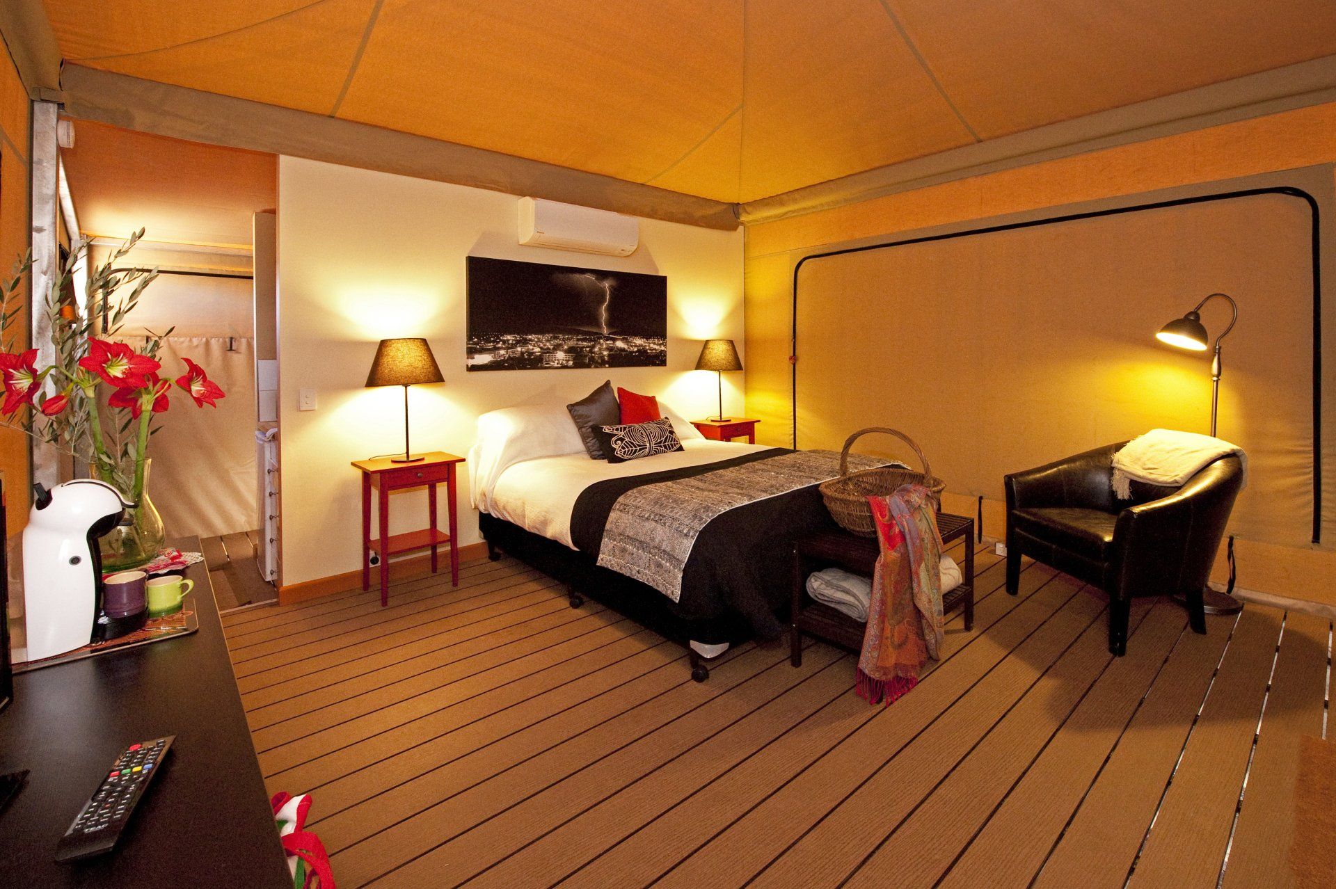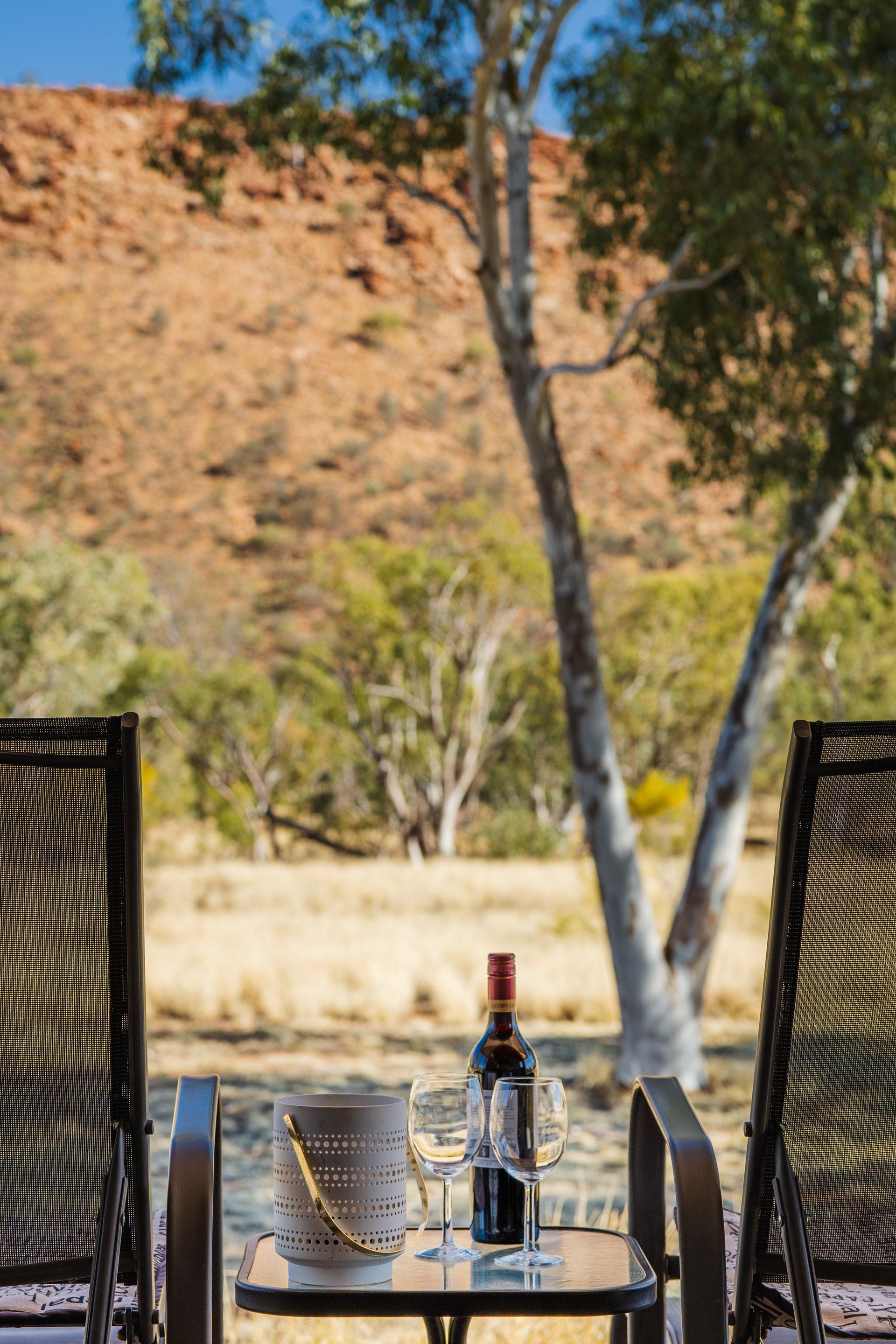 Situated on the edge of the iconic Western MacDonnell Ranges, the colours of Central Australia's scenery are best enjoyed from the front deck of your beautifully appointed Eco Structures Australia tent, with a cold drink and a platter of delicious nibbles. Squeakywindmill is unable to cater to young children.